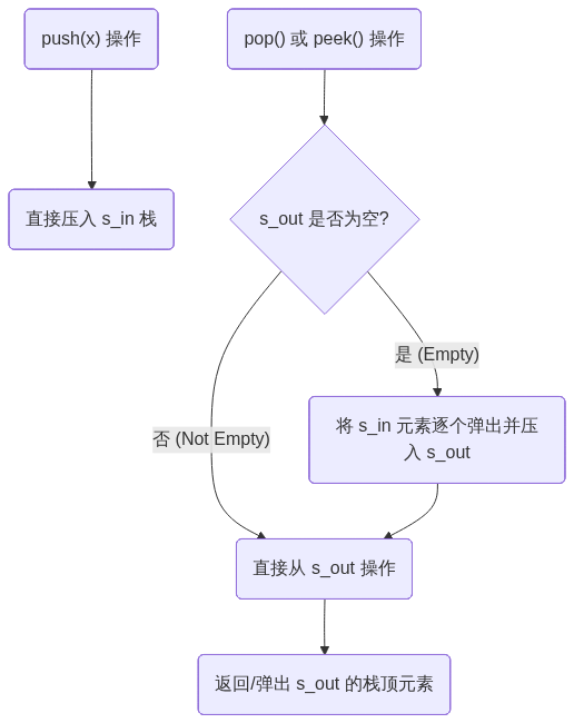 D -- "是 (Empty)" --> E("将 s_in 元素逐个弹出并压入 s_out")